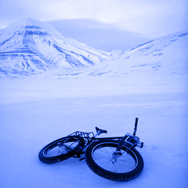 ENGLISH A 16 mm Bolex camera was mounted on a snow bike so that its operation depends on the rotation of the front wheel of the vehicle, thus causing differences in film exposure and slow motion depending on the speed of the bike. Several films of a few minutes were made during a solo raid on the Arctic ice at the end of the polar night in February 2008.